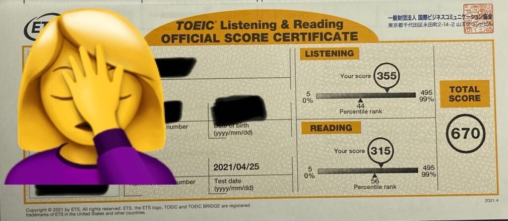 TOEICを獲得する目的:大学院試験を受験するためにTOEICまたはTOEFLの点数を提出しなければならなかったからです.